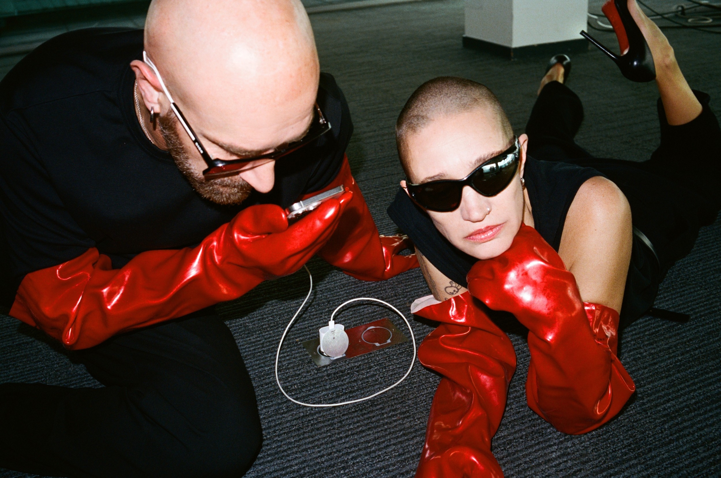 KOMPROMAT, c’est l’alliance de Vitalic et Rebeka Warrior (Sexy Sushi, Mansfield.TYA). Leur premier album Traum und Existenz, sorti en 2019 sur Clivage Music (le label de Vitalic), a posé les bases d’un univers sombre et percutant. En janvier 2025, ils reviennent avec PLAYING / PRAYING sur Warriorecords, label fondé par Rebeka Warrior. Ce nouveau disque explore des thèmes comme la prière (païenne ou non), les rites funéraires, les passages entre différents mondes, mais aussi les plaisirs de la chair, la danse, et l’extase – tel une invocation divine à travers la musique. Les genres se mélangent : EBM, Cold Wave, New Wave et techno radicale. Le duo s’amuse à brouiller les frontières. Là où l’allemand accompagnait le premier album, cette fois c’est l’anglais qui porte leurs nouvelles histoires.